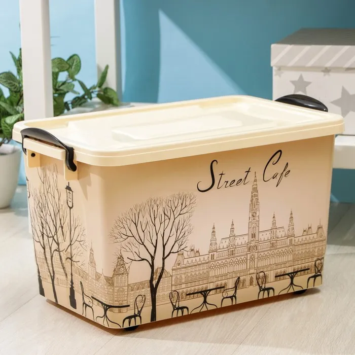 Контейнер для хранения с крышкой «Уличное кафе», 35 л, 50,5×31,5×28 см, на колёсиках, цвет слоновая кость — Характеристики