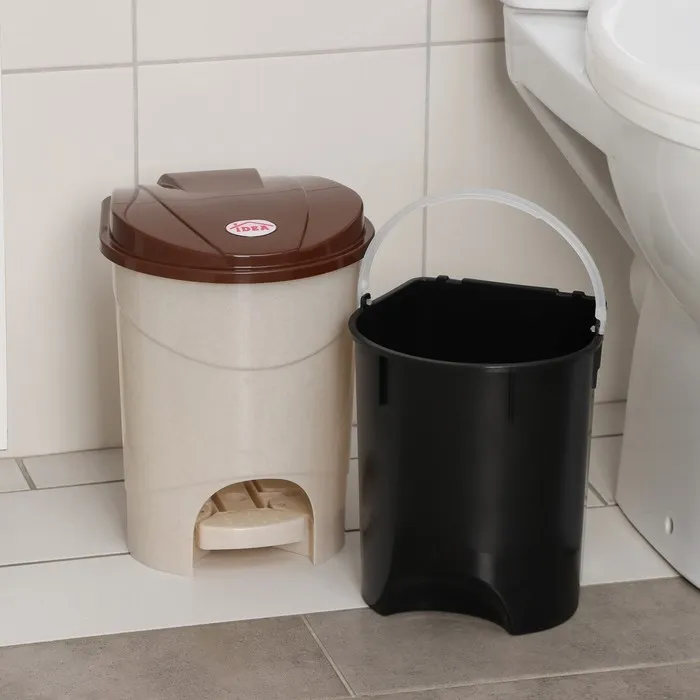 Контейнер для мусора, 7 л, с педалью, цвет бежевый мрамор — Характеристики