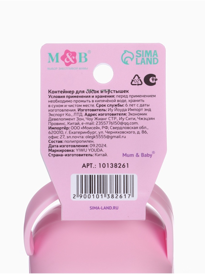 Контейнер для сосок и пустышек «Счастье здесь», розовый, Mum&Baby — Характеристики