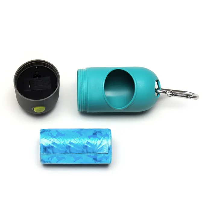Уникальная особенность контейнера — встроенный фонарик, который помогает легко находить пакеты даже в темное время суток. Набор включает 15 прочных пакетов, обеспечивающих гигиеническую уборку за вашим любимцем.