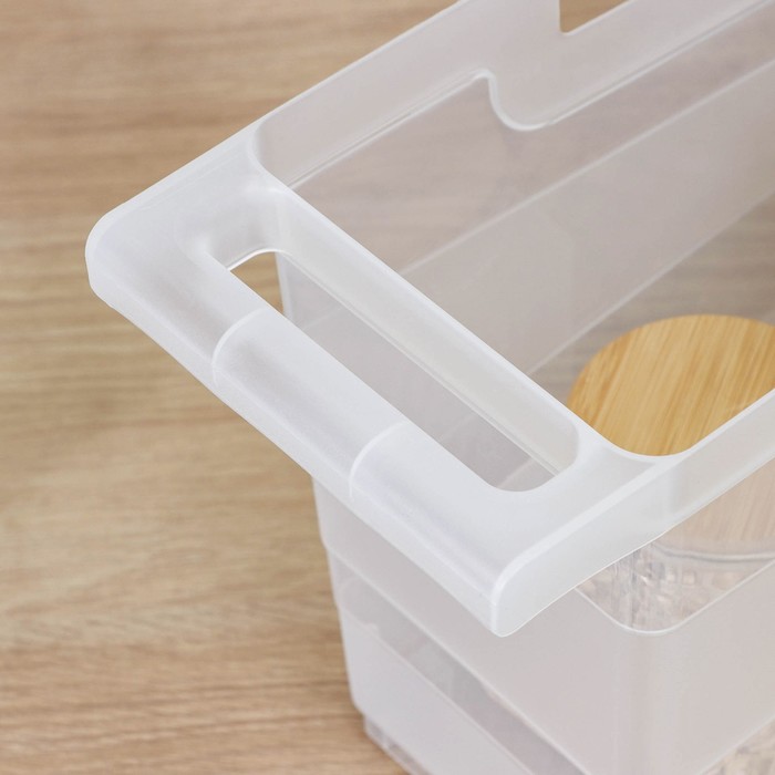 Вместительный контейнер на колесах обеспечит удобное хранение продуктов в холодильнике, либо различных вещей в любом шкафе, полке, на столе. Предотвратит падение бутылочных изделий, обеспечит сохранность хрупких предметов.