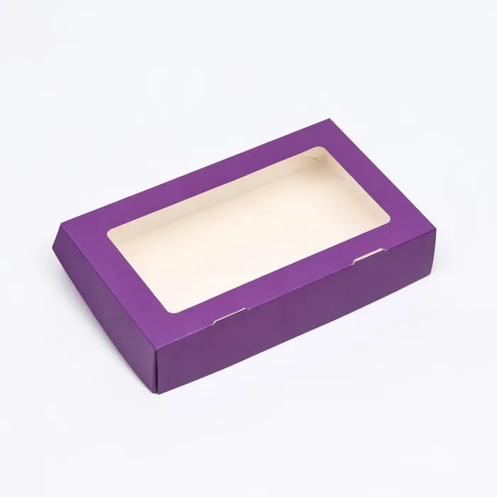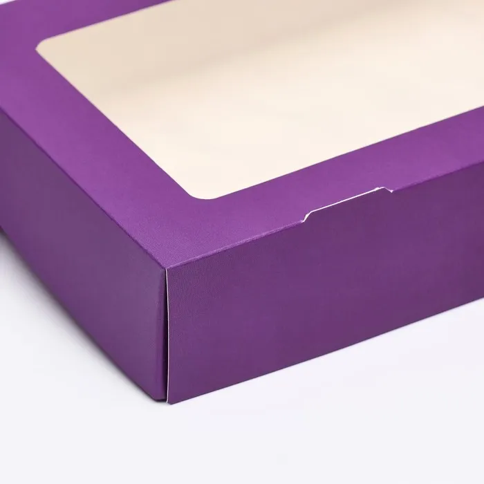 Кондитерская упаковка подходит для различных сладостей, например: макарун, печенья, конфет, шоколада. Но иногда их используют и как коробочку для подарка. Прозрачное окно помогает увидеть продукт до момента вскрытия.