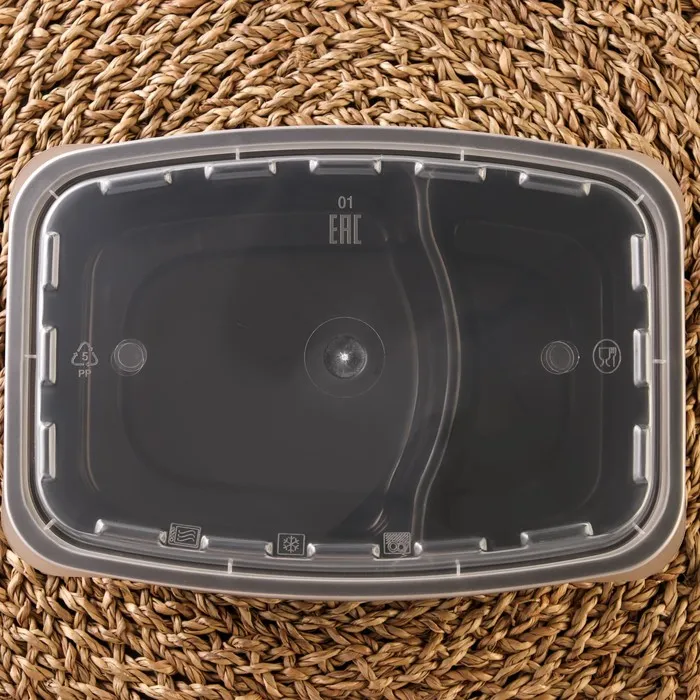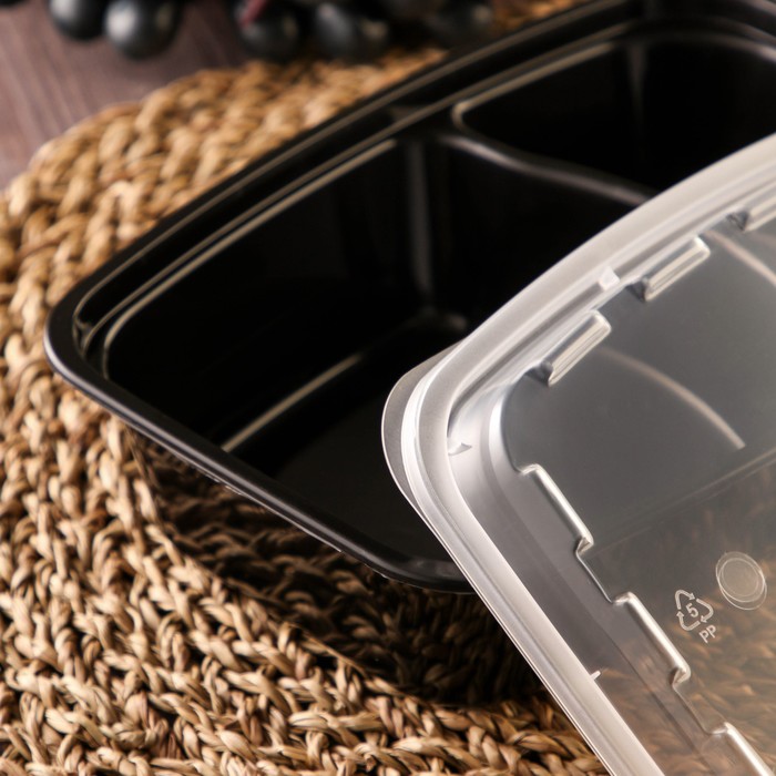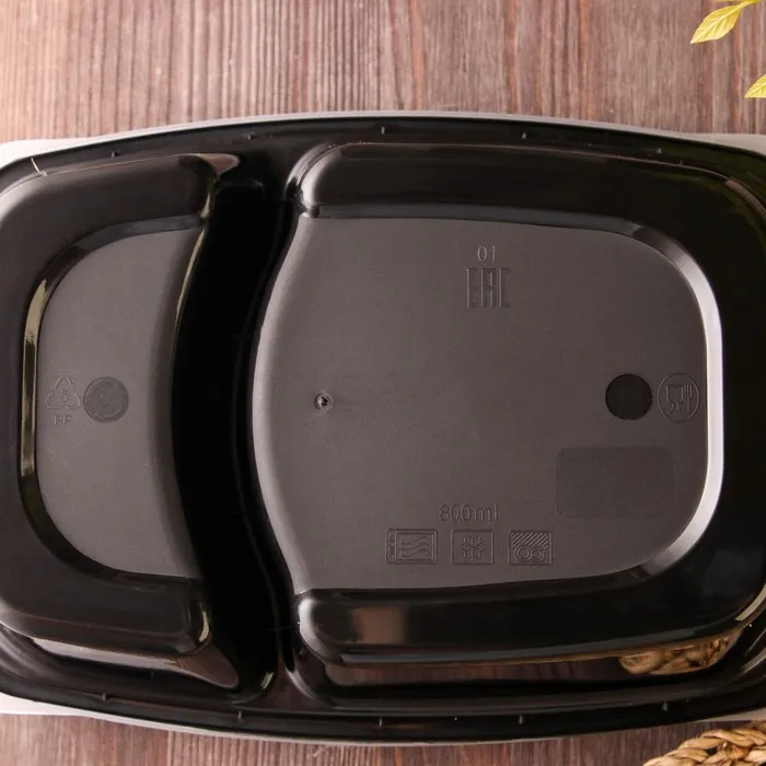 Контейнер одноразовый с крышкой, пластик, 830 мл, 2 секции, чёрный — Характеристики