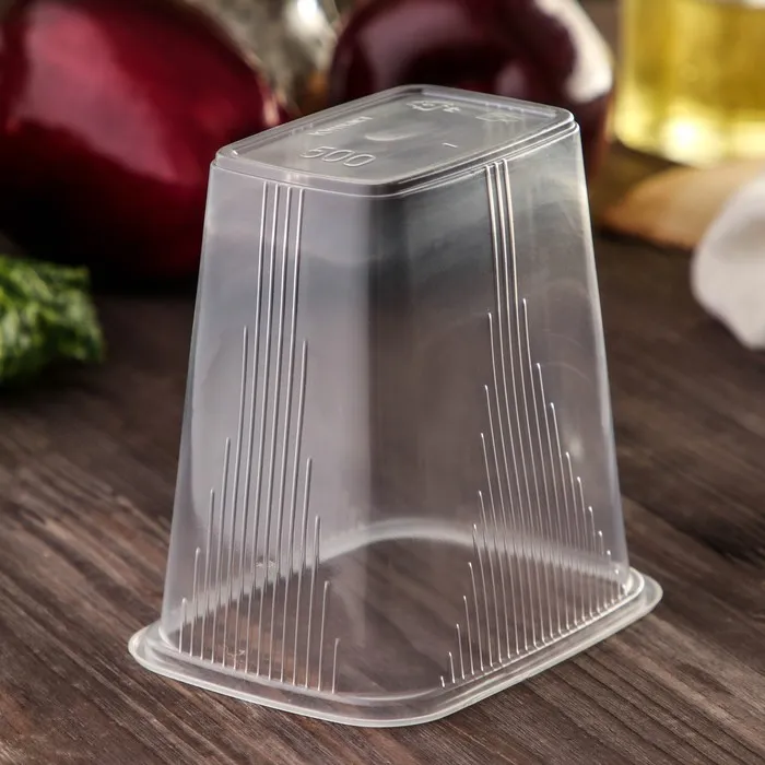 Нужна удобная и практичная тара для упаковки и хранения еды? Эти одноразовые пластиковые контейнеры с крышками – отличное решение. Вместительный объем 500 мл подойдет для порционных блюд, салатов, гарниров и многого другого. Прозрачный корпус обеспечивает видимость содержимого, а комплект из 10 штук – выгодное приобретение для дома или бизнеса.
