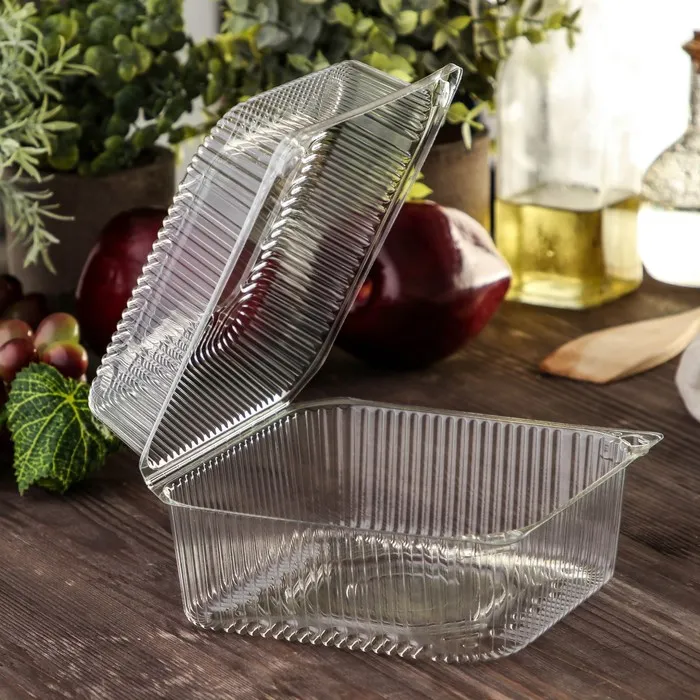 Контейнер одноразовый с неразъёмной крышкой ПР-К-15 В, пластик, квадратный, 250 мл, 15.2×8.1 см, прозрачный — Характеристики