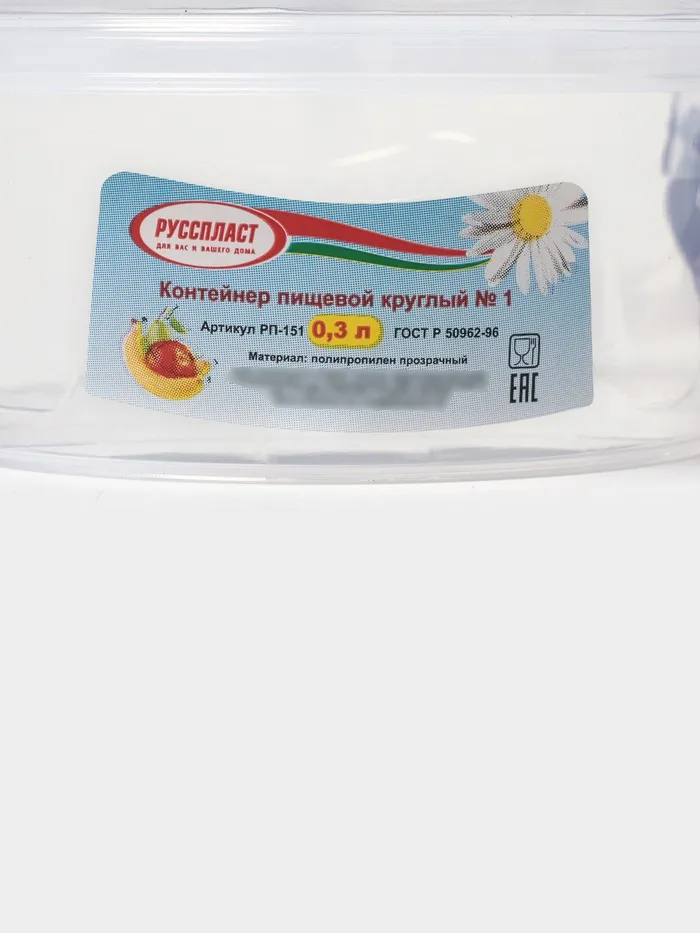 Контейнер пищевой, 300 мл, d=12 см, h=5 см, круглый, прозрачный, голубой — Характеристики