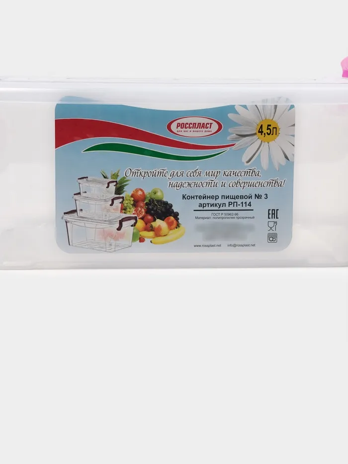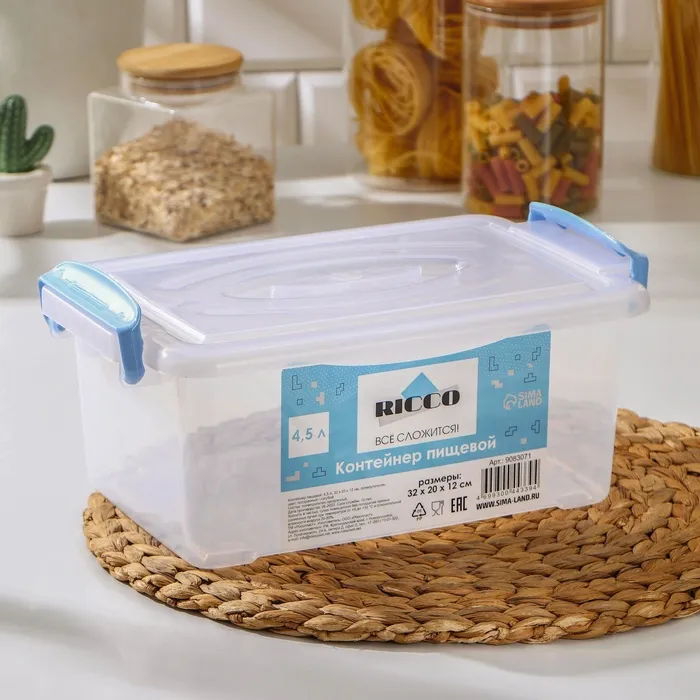 Контейнер пищевой, 4.5 л, 32×20×12 см, прямоугольный, прозрачный, ручки голубые — Характеристики