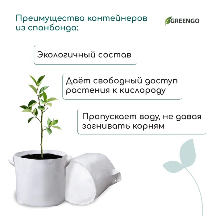 Сделан из спанбонда, который пропускает воздух и даёт растениям дышать, а также способствует отведению лишней влаги.