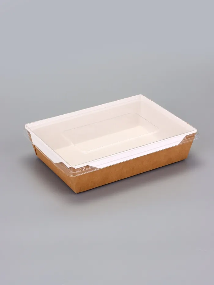 Контейнер - салатник, 1 л, крафт, с плоской прозрачной крышкой, 20×14×5.5 см — Характеристики