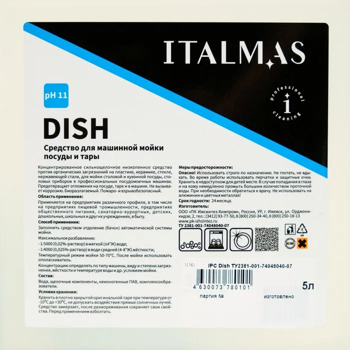 Концентрат для машинной мойки посуды и тары в воде любой жесткости. Эффективно против органических загрязнений на пластике, керамике, стекле, нержавеющей стали, для мойки столовой и кухонной посуды, столовых приборов в профессиональных и бытовых посудомоечных машинах даже на коротких циклах. Предотвращает отложения на посуде, таре и в машине. Не оставляет разводов.