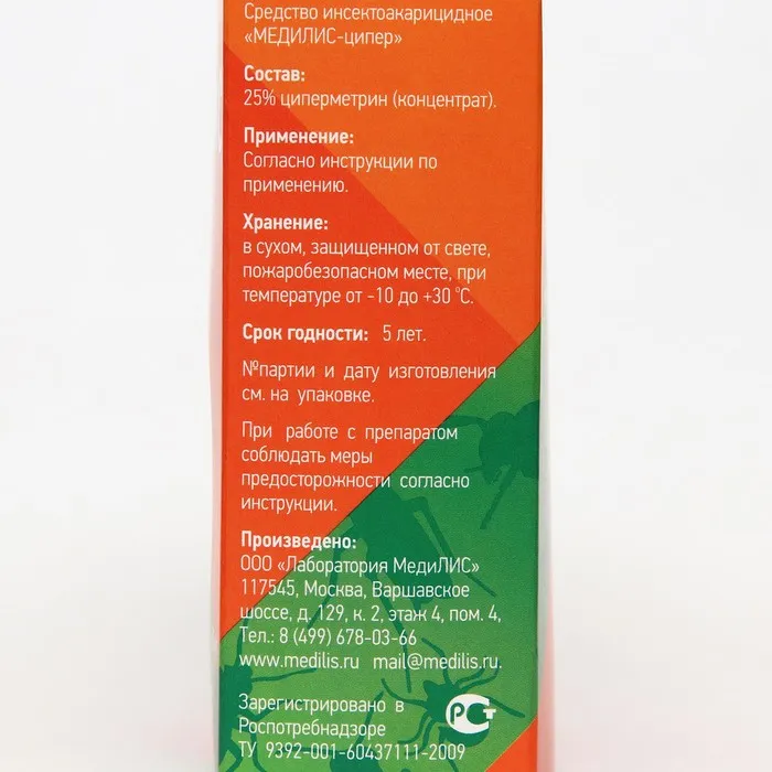 Концентрат "Медилис Ципер" - надежное средство для защиты вашего дома и территории от насекомых и клещей. Его использование поможет избежать неприятностей, связанных с укусами насекомых и передачей опасных заболеваний клещами.