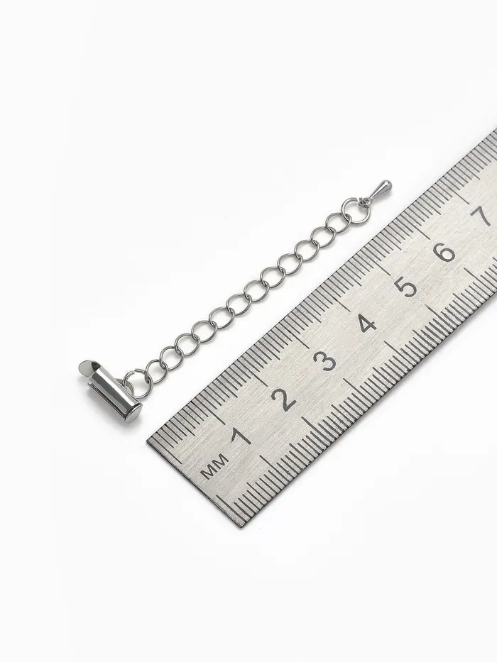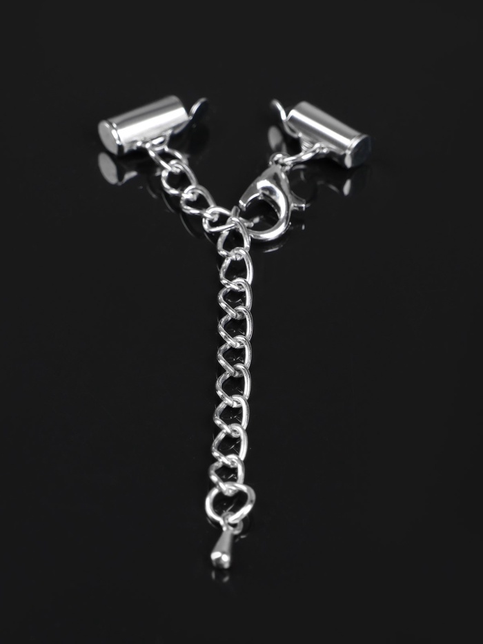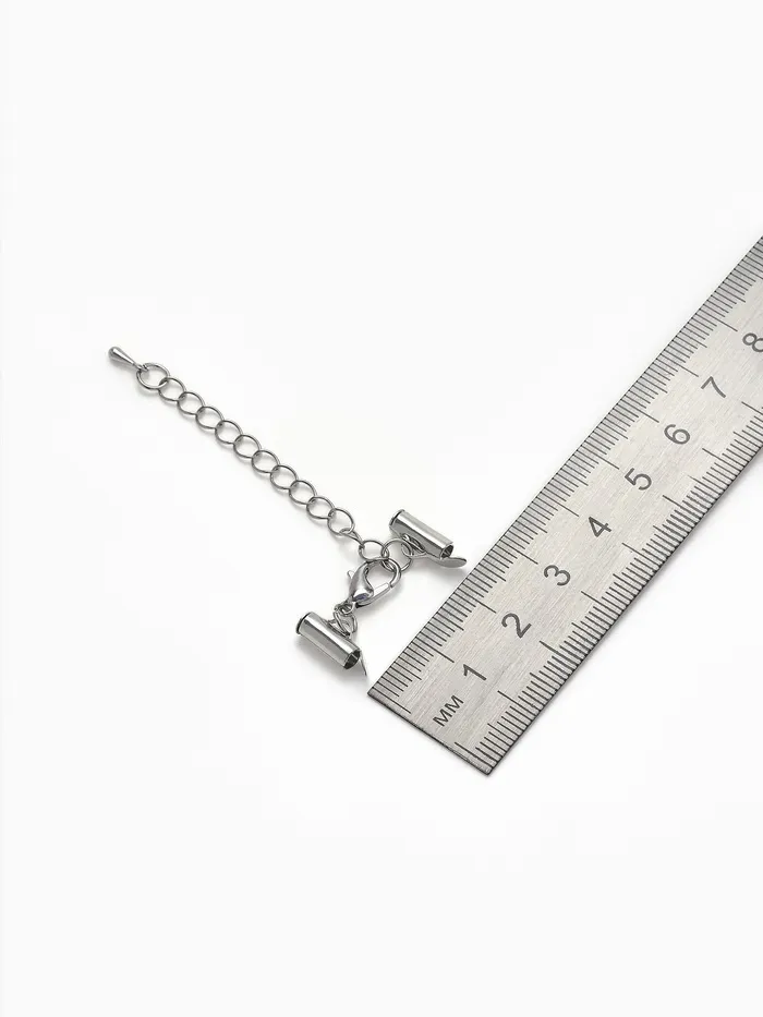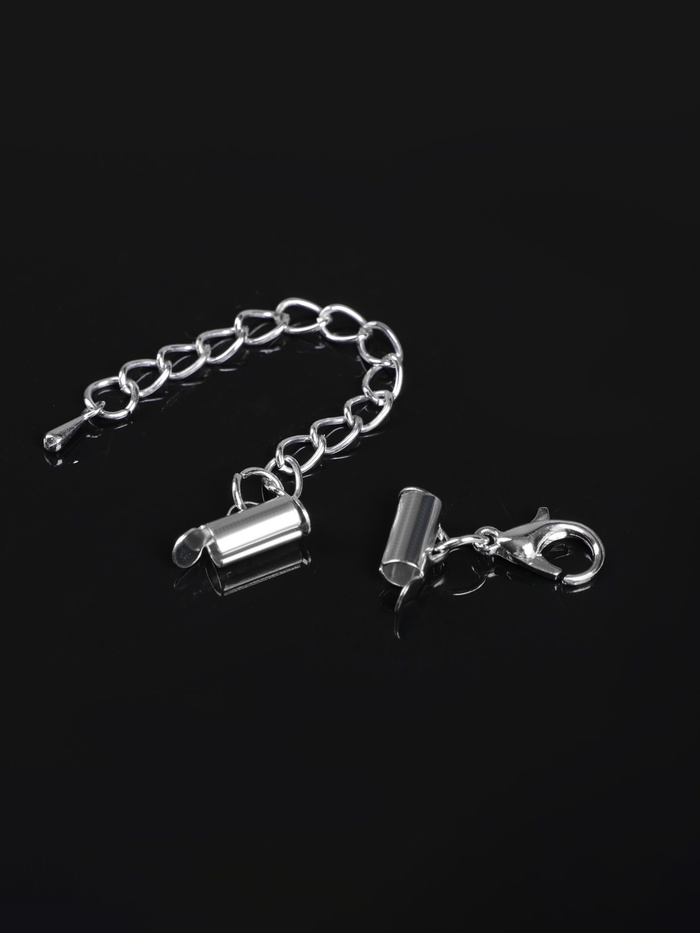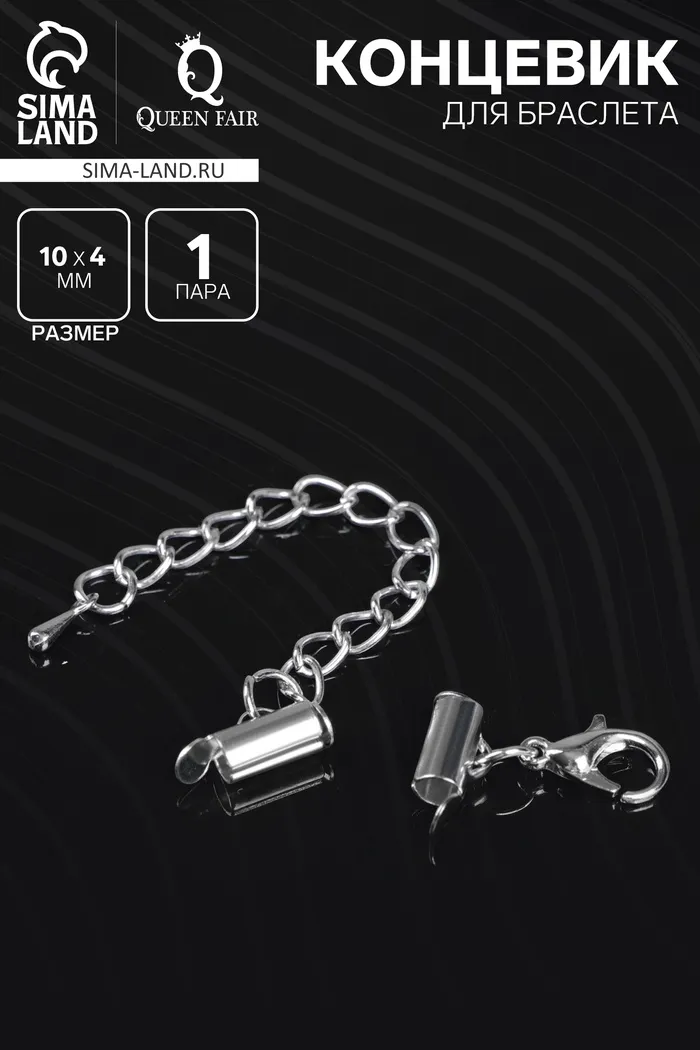 Концевик для браслета из бисера (пара) QF, 10 мм, металл, с цепочкой удлинителем, цвет серебро — Характеристики