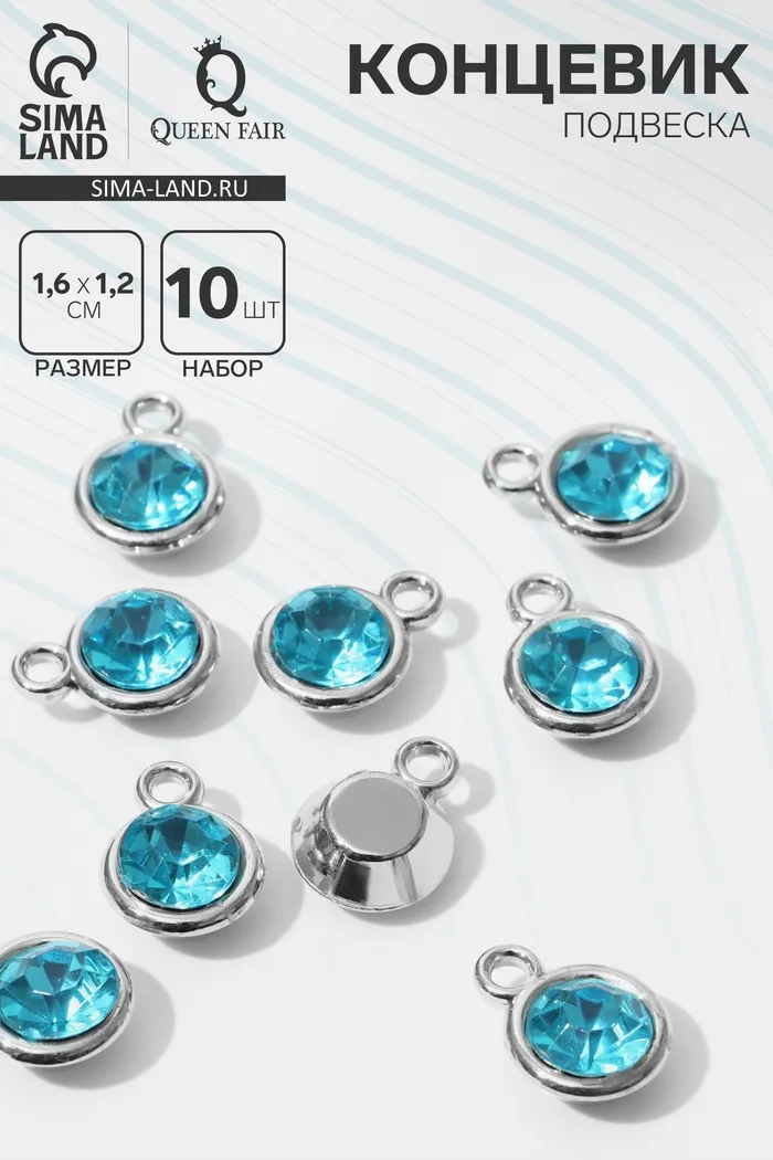 Концевик-подвеска «Круг» 1,6×1,2×0,8 см, (набор 10 шт.), цвет голубой в серебре — Характеристики