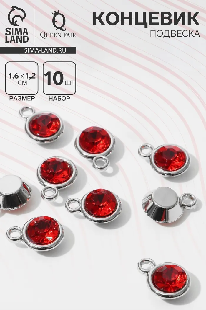 Концевик-подвеска «Круг» 1,6×1,2×0,8 см, (набор 10 шт.), цвет красный в серебре — Характеристики