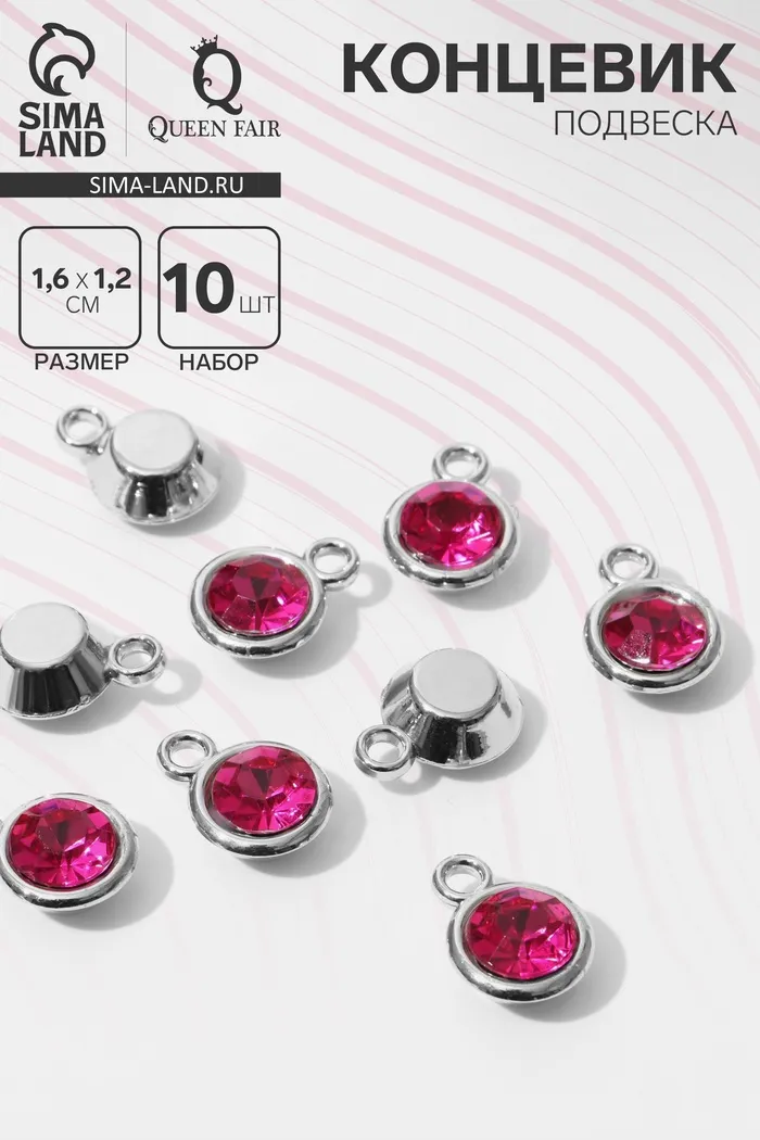 Концевик-подвеска «Круг» 1,6×1,2×0,8 см, (набор 10 шт.), цвет малиновый в серебре — Характеристики