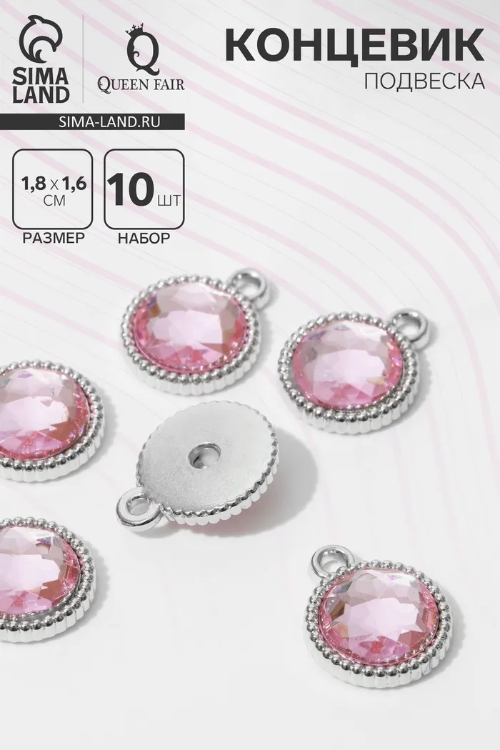 Концевик-подвеска «Круг» рифлёный 1,8×1,6×0,2, (набор 10 шт.), цвет розовый в серебре — Характеристики