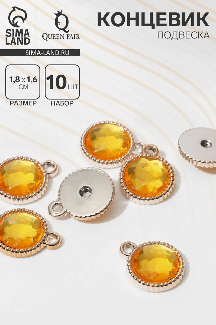 Концевик имеет компактный размер и круглую форму, что делает его подходящим для различных украшений, от браслетов до кулонов. Изготовлен из качественного материала, устойчивого к внешним воздействиям, благодаря чему сохраняет свою привлекательность и функциональность в процессе носки. Набор из 10 штук позволит создавать целые коллекции украшений или использовать его для многоярусных дизайнов.