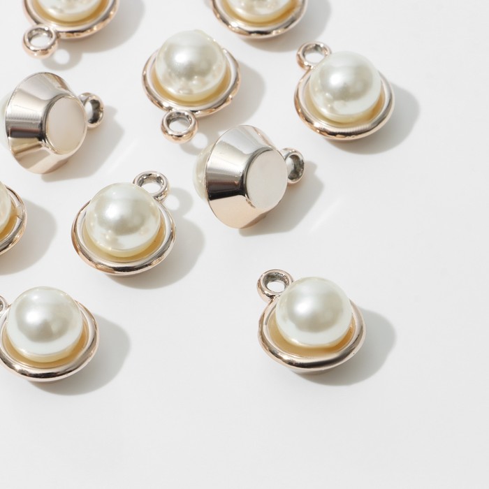 Концевик-подвеска «Жемчуг» шарик 2,1×1,6×1,5 см, (набор10 шт.), цвет белый в золоте