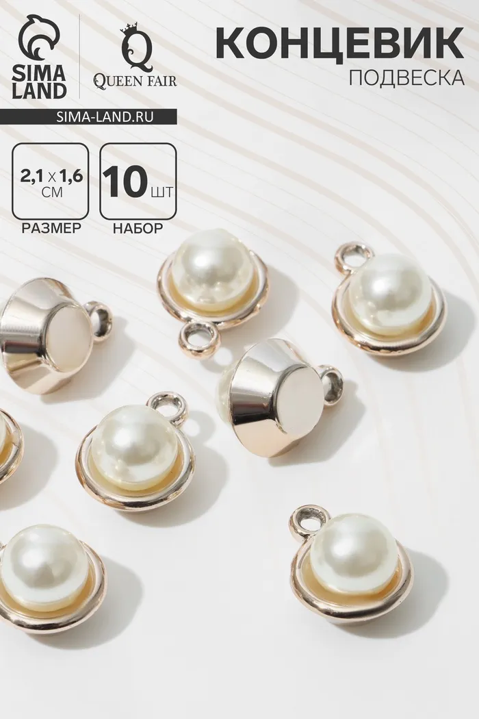 Концевик-подвеска «Жемчуг» шарик 2,1×1,6×1,5 см, (набор10 шт.), цвет белый в золоте — Характеристики