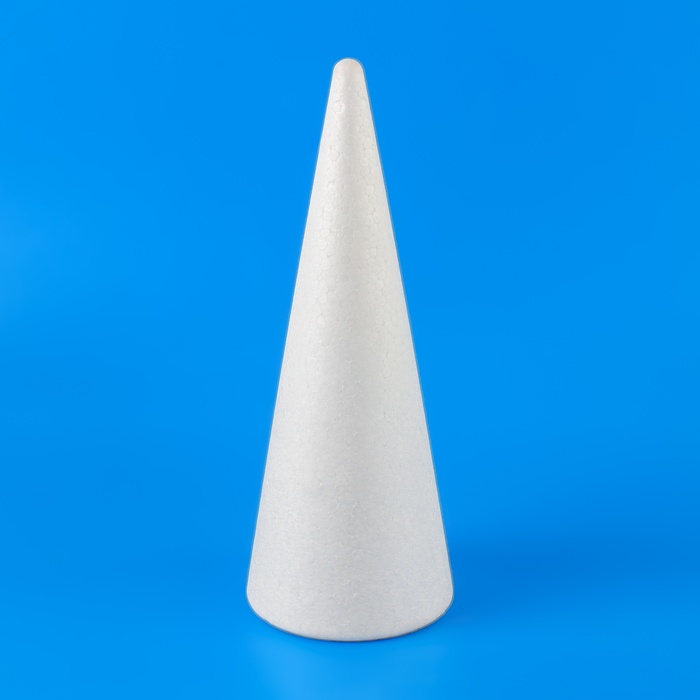 - Благодаря прочности пенопласта конус сохраняет форму даже при интенсивной обработке, что делает его отличным выбором для создания декоративных элементов, искусственных елок, композиций или учебных пособий.