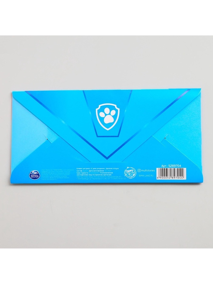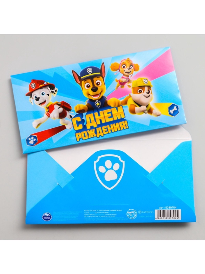 Конверт для денег, 16.5 х 8 см «С днём Рождения», Щенячий патруль — Характеристики