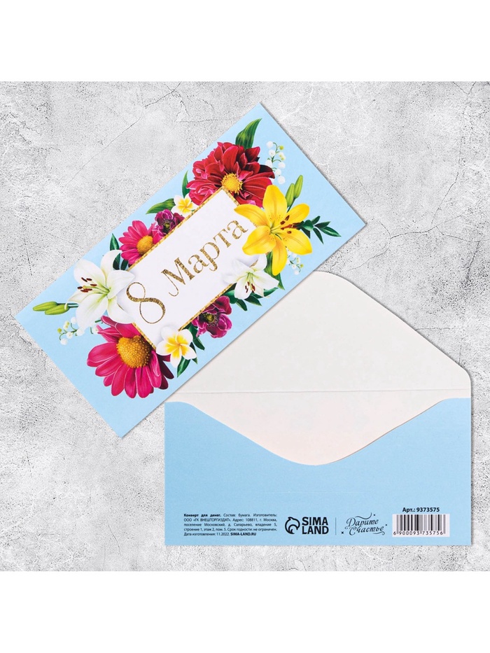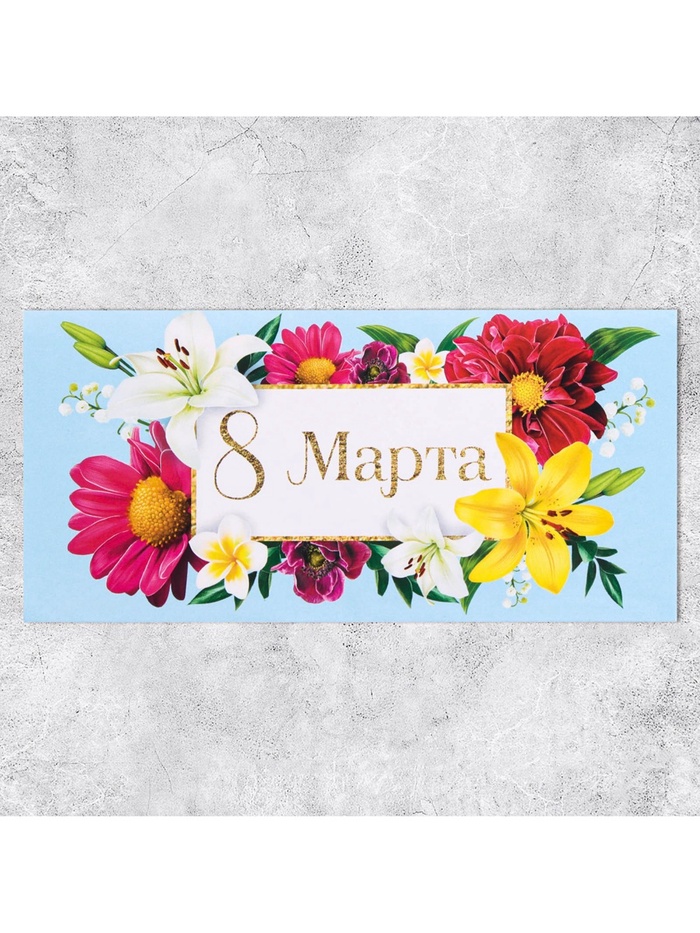 Конверт для денег «8 марта», цветы, 16.5×8 см — Характеристики