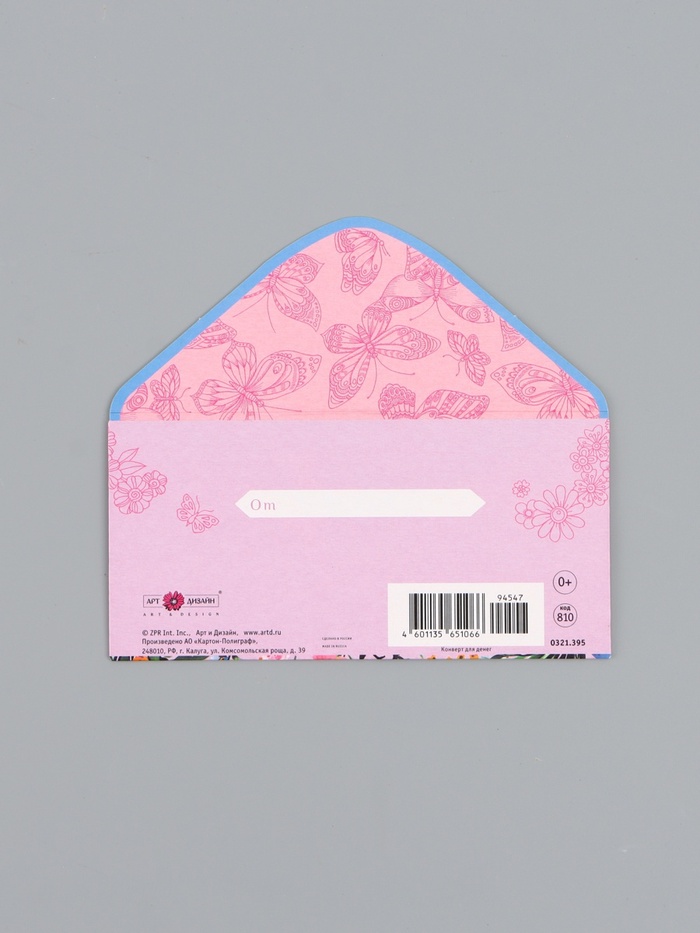 Конверт для денег «Бабочки и цветы», 16,5 х 8 см — Характеристики