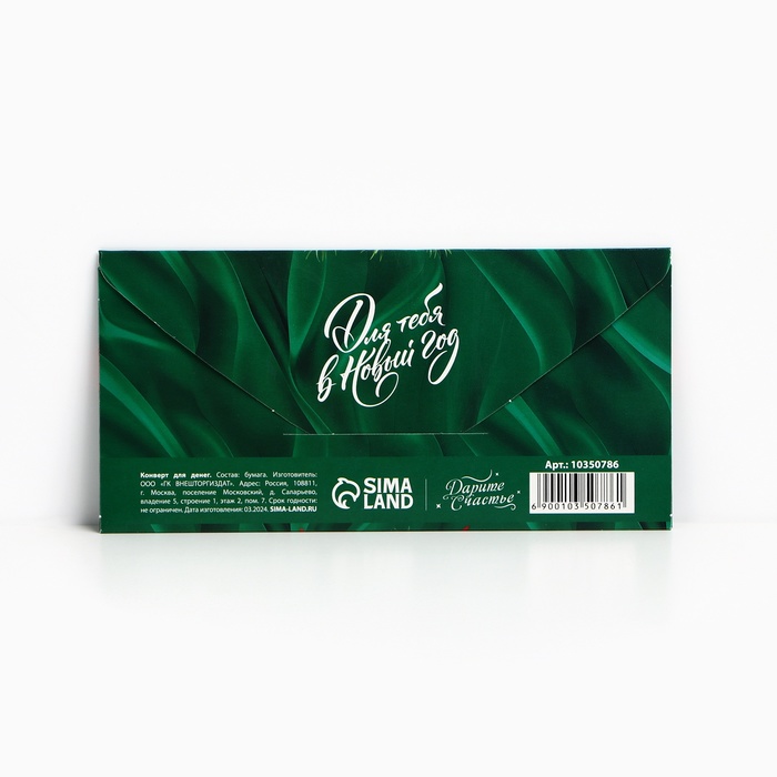 Конверт для денег фигурный «Счастливого нового года», 17.5 х 8 см