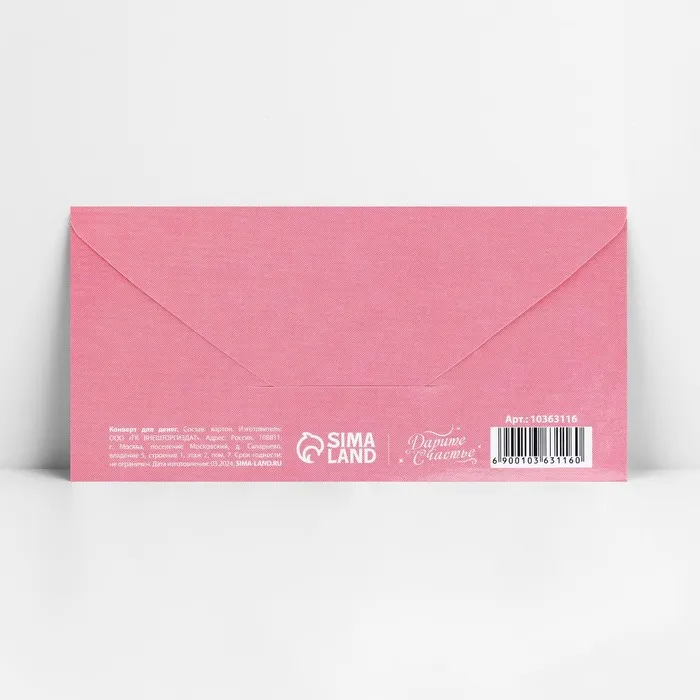 Конверт для денег «Бант розовый», 16.5 х 8 см — Характеристики