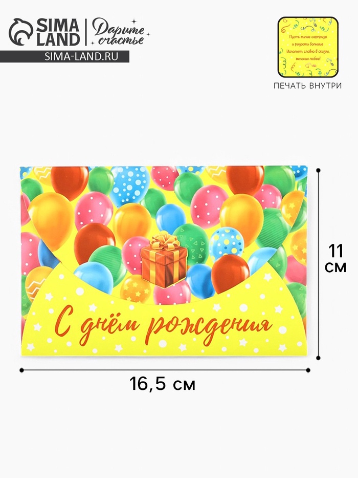 Конверт подарочный «С Днём рождения», 16.5×11 см
