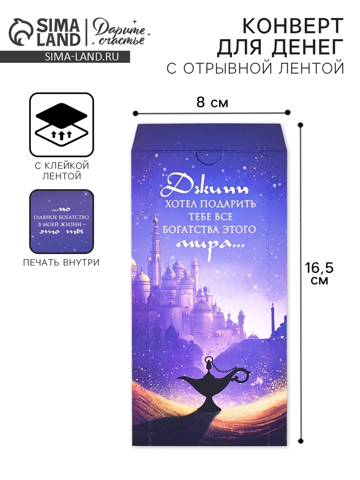 Конверт для денег с отрывной лентой «Джин», 16.5 х 8 см