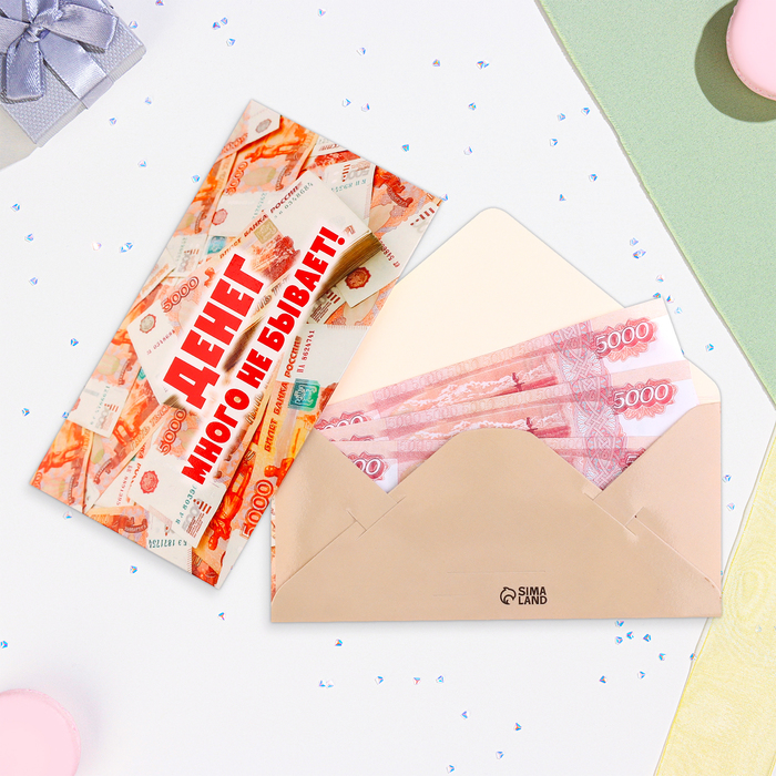 Конверт для денег «Денег много не бывает!», 16.5×8 см — Характеристики