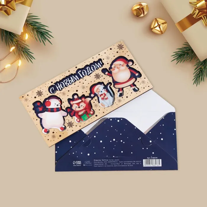 Конверт для денег деревянный резной «С Новым Годом!», 16.5×8 см — Характеристики