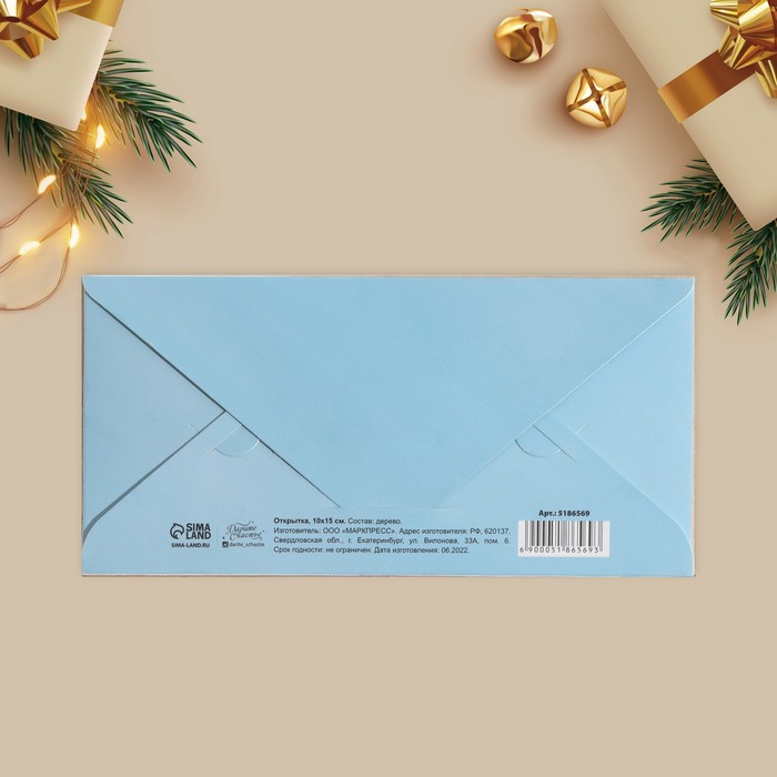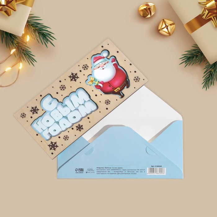 Конверт для денег деревянный резной «С Новым Годом!» Дед Мороз, 16.5×8 см — Характеристики