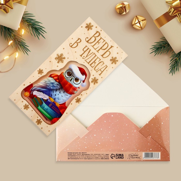 Конверт для денег деревянный резной «Верь в чудеса», 16.5×8 см — Характеристики
