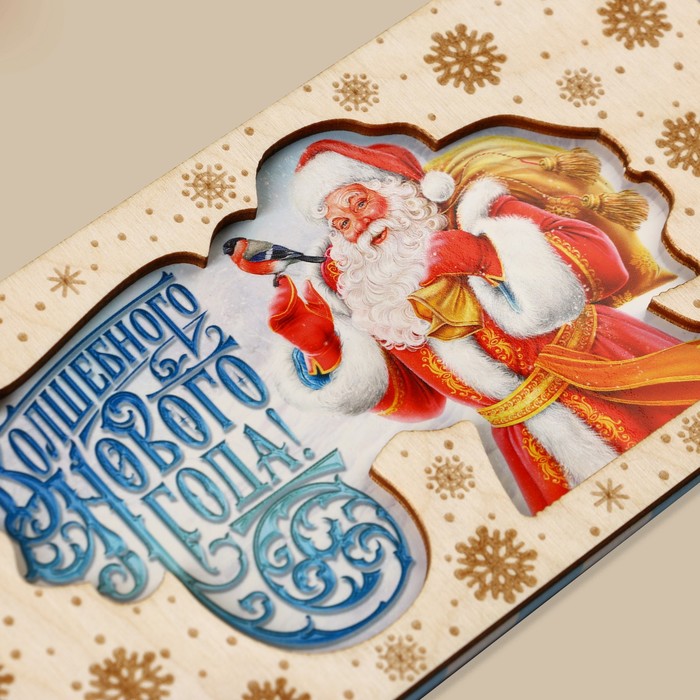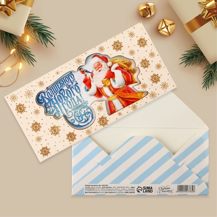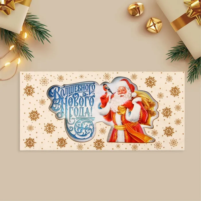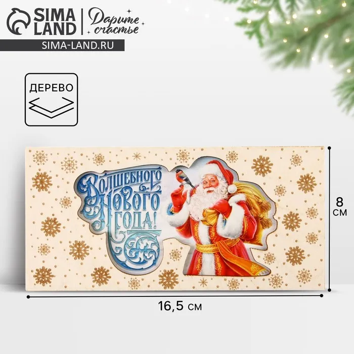 Конверт для денег деревянный резной «Волшебного Нового года!», Дед Мороз, 16.5 х 8 см — Характеристики