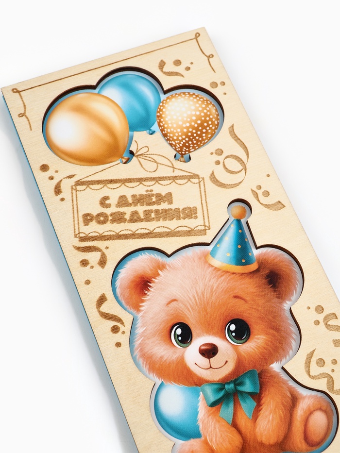 Конверт для денег деревянный «С днём рождения», мишка, 16.5×8 см — Характеристики