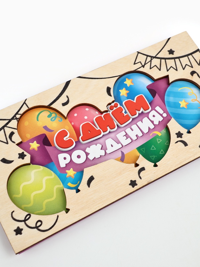 Конверт для денег деревянный «С днём рождения», шары, 16.5×8 см — Характеристики