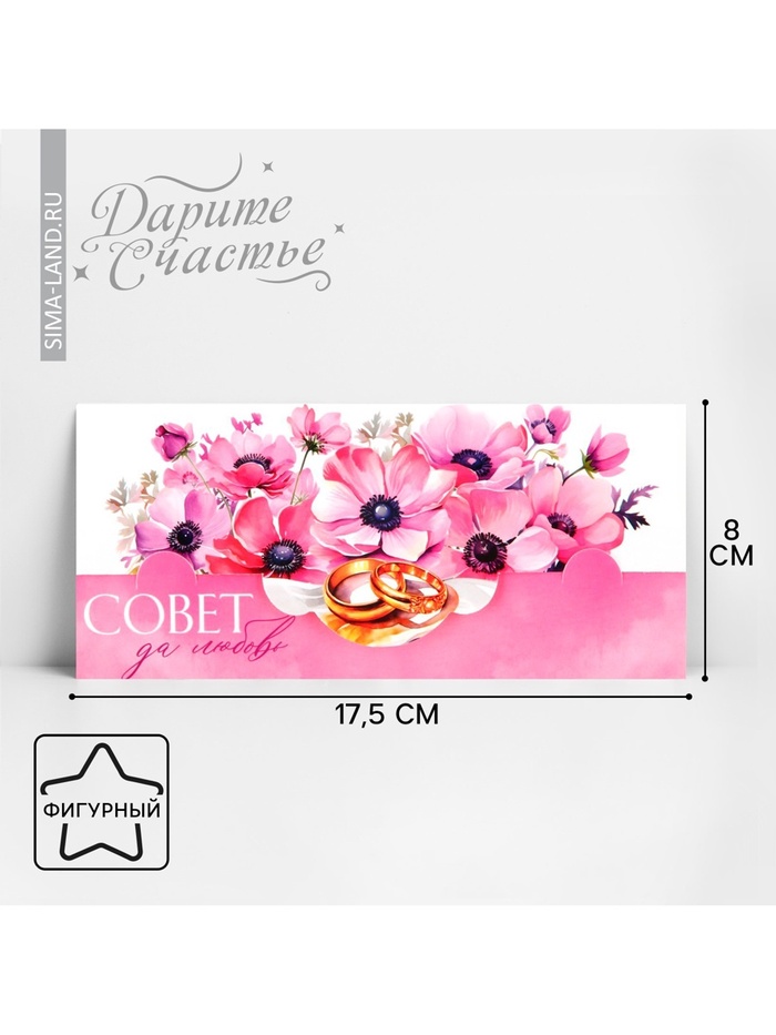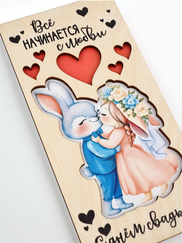 Конверт для денег деревянный «С днём свадьбы! Всё начинается с любви», 16.5 х 8 см — Характеристики
