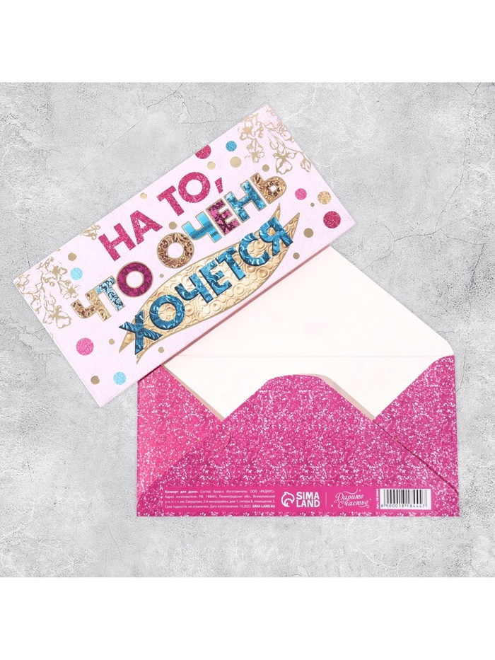 Конверт для денег «На то, что очень хочется», Тиснение фольгой, 16.5×8 см