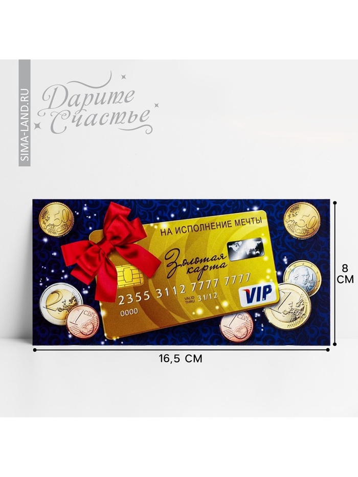 Конверт для денег «На исполнение мечты» банковская карта, 16.5×8 см