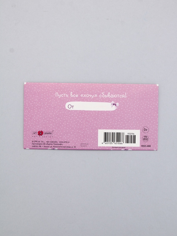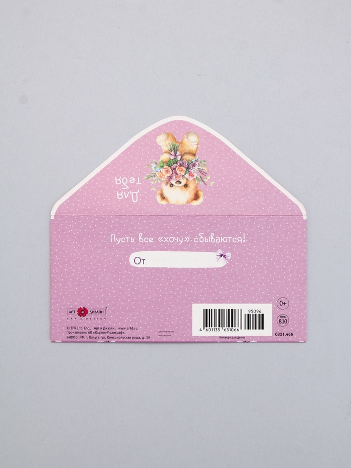 Конверт для денег «Для Тебя», мишка, 16,5 х 8 см — Характеристики