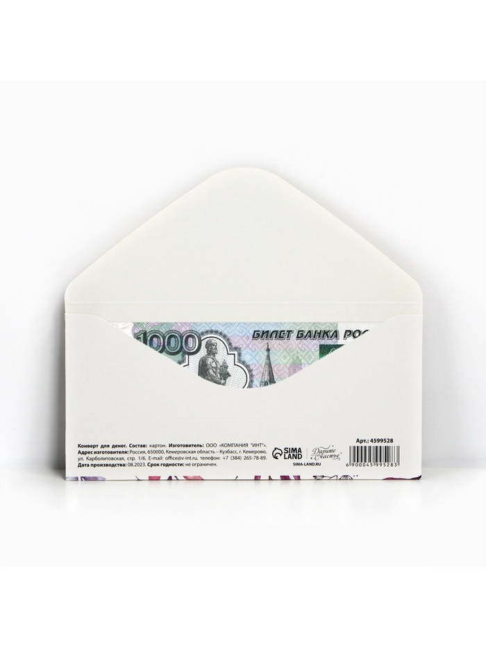 Конверт для денег «Для тебя от всего сердца», 16.5×8 см — Характеристики