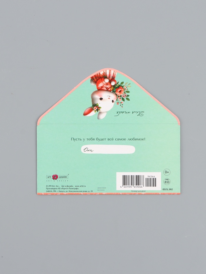Конверт для денег «Для Тебя», зайка, 16,5 х 8 см — Характеристики