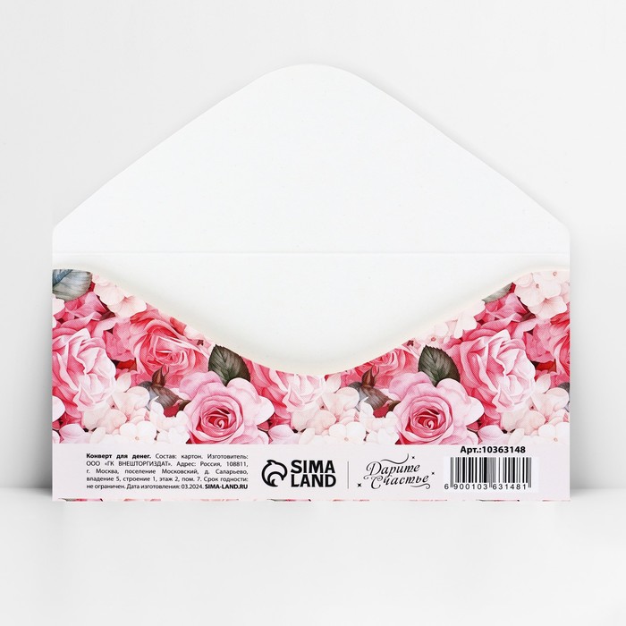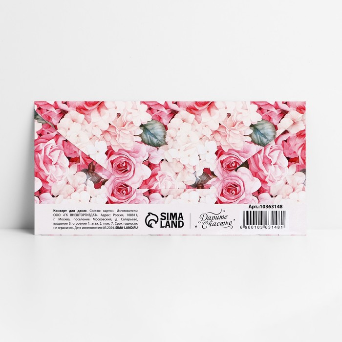 Конверт для денег «Настоящие цветы» фигурный, 17.5×8 см