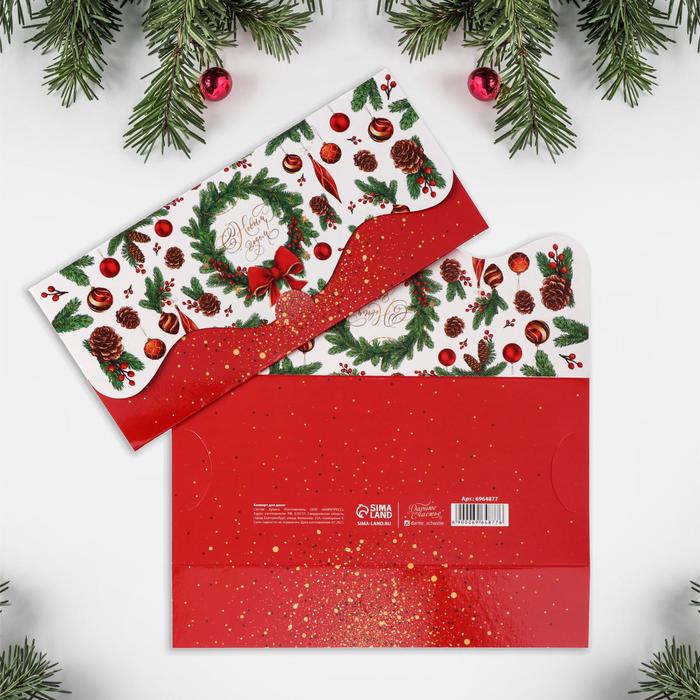 Конверт для денег фигурный «Новогодний венок», 17.5 х 8 см