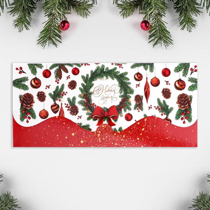 Конверт для денег фигурный «Новогодний венок», 17.5 х 8 см — Характеристики