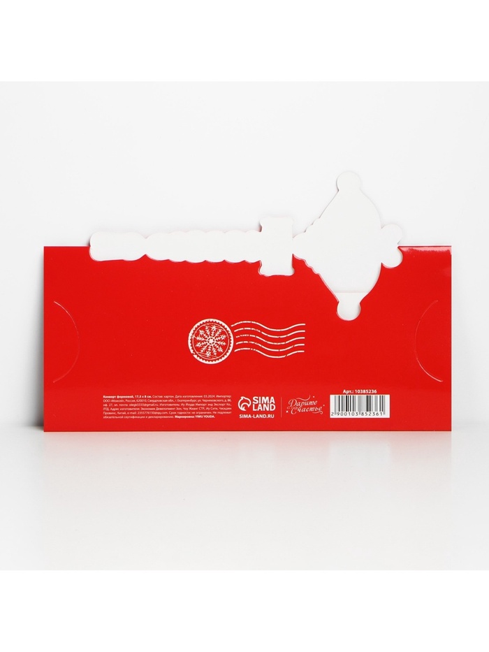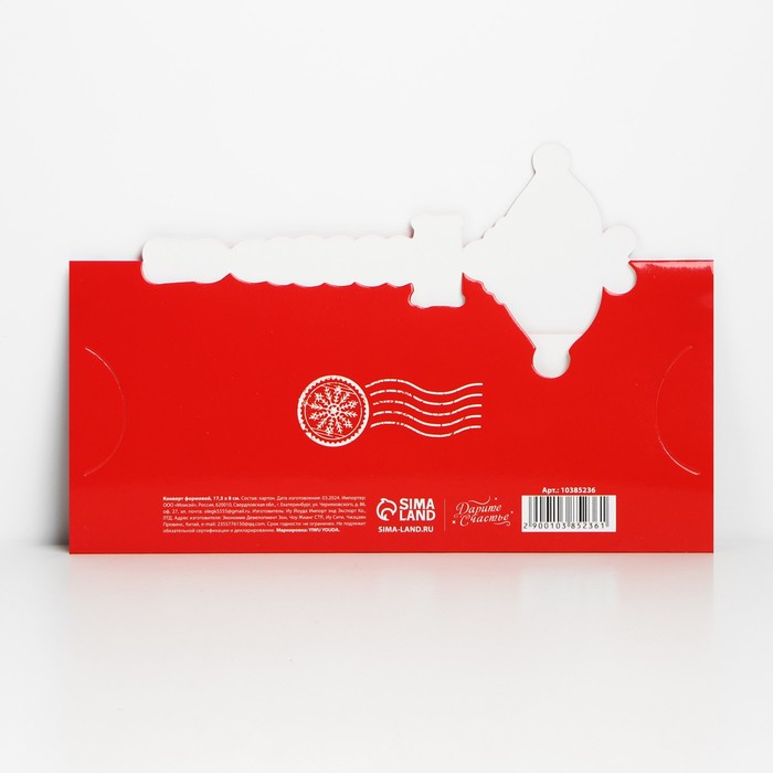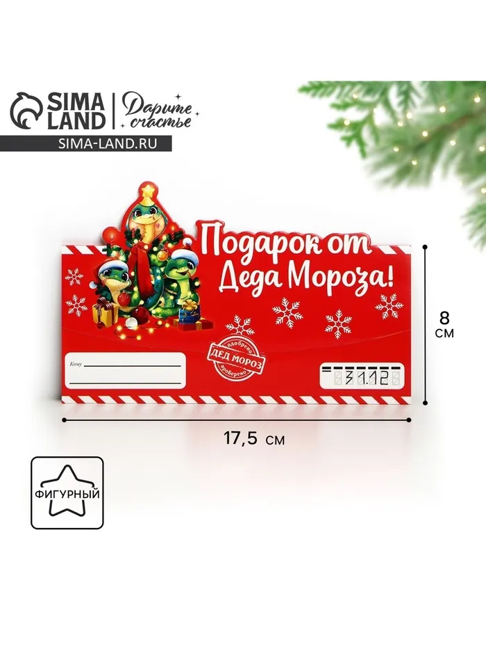 Конверт для денег фигурный «Подарок от Деда Мороза», 17.5×8 см — Характеристики