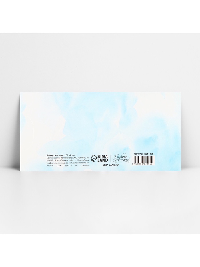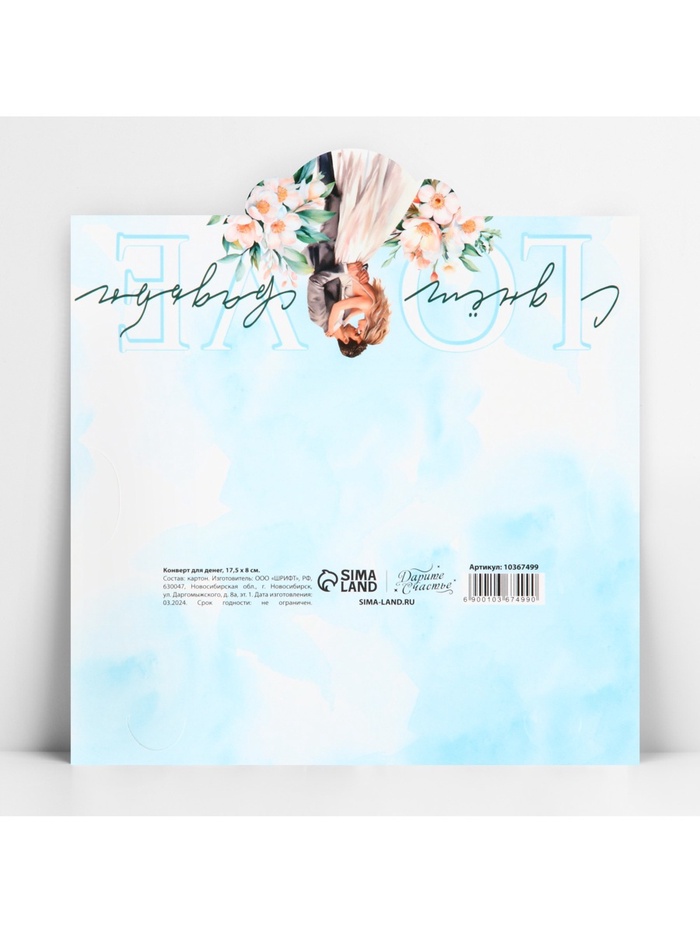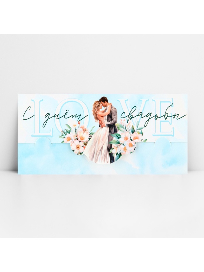 Конверт для денег фигурный «С днём свадьбы», голубой, 17.5×8 см — Характеристики