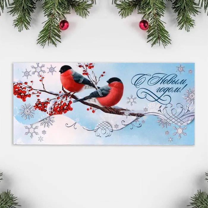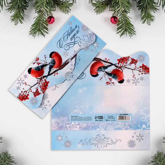 Конверт для денег фигурный «Снегири», 17.5 х 8 см — Характеристики